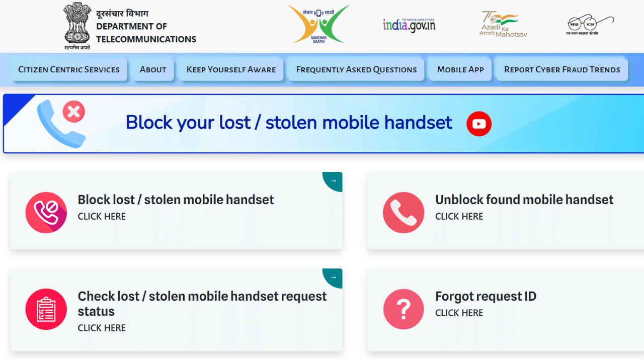 Losing a mobile phone or having it stolen can be stressful and inconvenient. However, that’s not the case anymore, as to help users manage such situations, the Indian government offers the Sanchar Saathi portal, which is an easy way to block, unblock, and track the status of lost or stolen devices. The complete process is online and quick. By using this method, users can ensure that their lost or stolen device is not misused. However, do note that before starting the process, it is important to file an FIR and get a duplicate SIM, which should be activated. Follow along with the article to learn how you can block, unblock and check the status of your lost or stolen device on Sanchar Saathi.