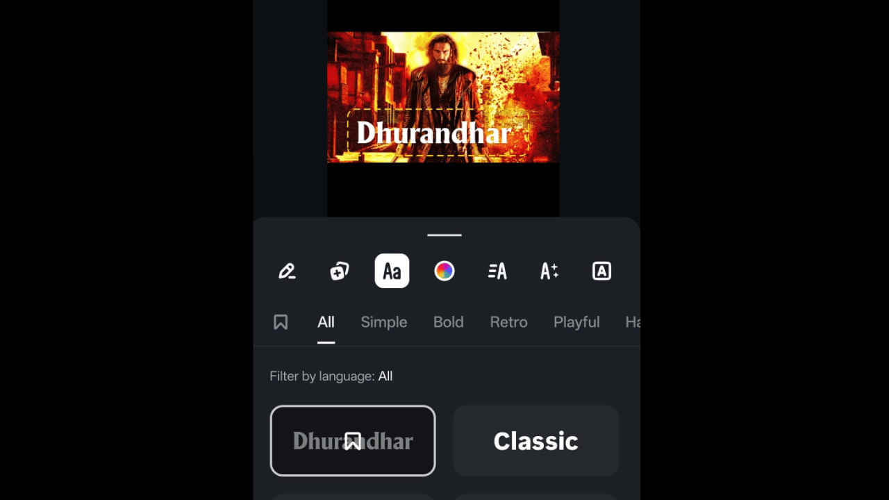 The Dhurandhar-inspired font is a type of font that is offered within Instagram’s Edits app. This font is designed to mimic the strong look of action movie title styles. This is because action movies are known for their dramatic text styles. This font is used to make text stand out in videos.