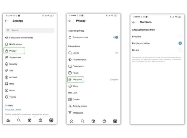 ಅಂದ್ರೆ ನಿಮ್ಮ ಮಕ್ಕಳು ತಮಗೆ ಬೇಕಾದವರನ್ನು ಮಾತ್ರ ಸ್ನೇಹಿತರಾಗಬಹುದು ಅಥವಾ ಮೆಸೇಜ್ ಮಾಡಬಹುದು. ಈ ಖಾತೆಯನ್ನು ಈ ರೀತಿ ಆಕ್ಟಿವೇಟ್ ಮಾಡಬಹುದು ಮೊದಲಿಗೆ Go to Settings > Family Center > Supervision, and send an invite to your teen’s account. then Your teen needs to accept the invite to enable supervision ಅಷ್ಟೇ.