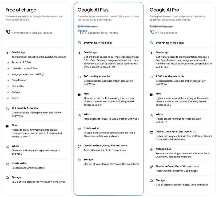 Google AI Plus in India