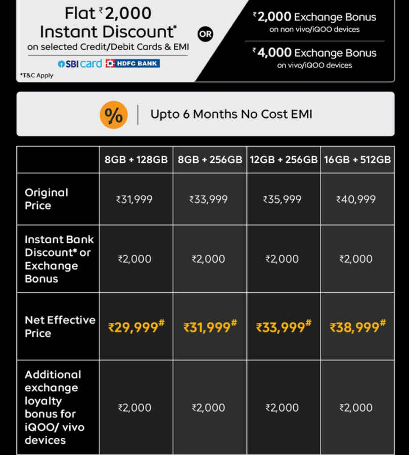 iQOO Neo 10 ಸ್ಮಾರ್ಟ್ಫೋನ್ ಒಟ್ಟಾರೆಯಾಗಿ ನಾಲ್ಕು ರೂಪಾಂತದರಲ್ಲಿ ಅಮೆಜಾನ್ ಮೂಲಕ ಲಭ್ಯವಾಗಲಿದ್ದು ಇದರ ಆರಂಭಿಕ 8GB RAM ಮತ್ತು 128GB ಸ್ಟೋರೇಜ್ ರೂಪಾಂತರವನ್ನು ₹29,999 ರೂಗಳಿಗೆ ಮತ್ತು ಇದರ ಮತ್ತೊಂದು 8GB RAM ಮತ್ತು 256GB ಸ್ಟೋರೇಜ್ ರೂಪಾಂತರವನ್ನು ₹31,999 ರೂಗಳಿಗೆ ಮತ್ತೊಂದು 12GB RAM ಮತ್ತು 256GB ಸ್ಟೋರೇಜ್ ರೂಪಾಂತರವನ್ನು ₹33,999 ರೂಗಳಿಗೆ ಕೊನೆಯದಾಗಿ ಇದರ 16GB RAM ಮತ್ತು 512GB ಸ್ಟೋರೇಜ್ ರೂಪಾಂತರವನ್ನು ₹38,999 ರೂಗಳಿಗೆ ಪಟ್ಟಿ ಮಾಡಲಾಗಿದೆ.