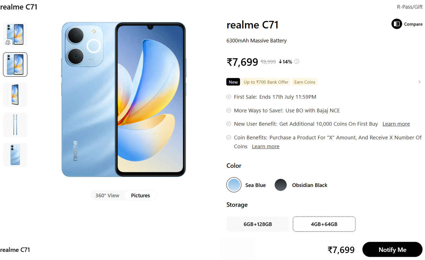 SurveyRealme C71 ಬೆಲೆ, ಬ್ಯಾಂಕ್ ಕೊಡುಗೆ ಮತ್ತು ಮಾರಾಟದ ವಿವರಗಳು