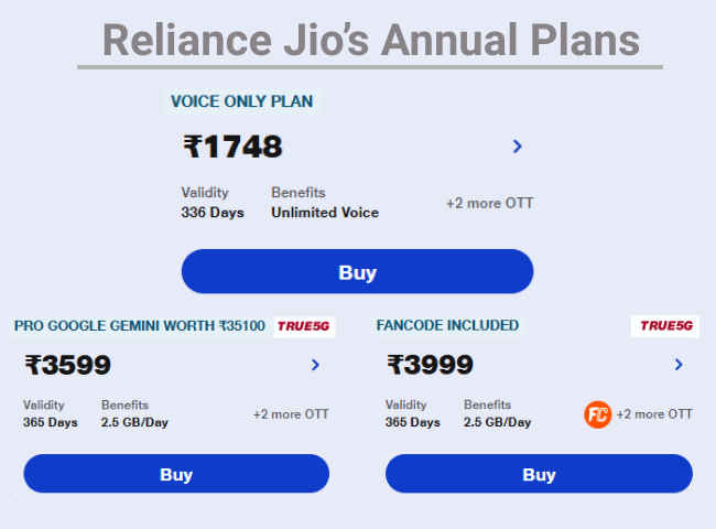 Reliance Jio Annual Plans 2025
