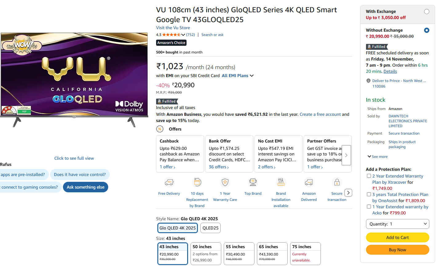 ಈ 43 ಇಂಚಿನ ಕ್ಯೂಎಲ್‌ಇಡಿ ಟಿವಿಗೆ ಇಷ್ಟು ಕಡಿಮೆ ಬೆಲೆ ಇರುವುದು ಇದರ ಮುಖ್ಯ ಆಕರ್ಷಣೆ ಮತ್ತು ಅನುಕೂಲವಾಗಿದೆ. ನೀವು ನಿಮ್ಮ ಹಳೆಯ ಸ್ಮಾರ್ಟ್‌ ಟಿವಿಯನ್ನು ಇದರೊಂದಿಗೆ ವಿನಿಮಯ ಮಾಡುವುದರೊಂದಿಗೆ ಸುಮಾರು ₹3,050 ರೂಗಳ ವರೆಗೆ ಡಿಸ್ಕೌಂಟ್ ನಿರೀಕ್ಷಿಸಬಹುದು. ಆದರೆ ಈ ಡೀಲ್ ಬೆಲೆ ನಿಮ್ಮ ಹಳೆ ಟಿವಿಯ ಸ್ಥಿತಿಯ ಮೇಲೆ ನಿರ್ಧರಿಸಲಾಗುತ್ತದೆ ಎಂಬುದನ್ನು ನೀವು ನೆನಪಿನಲ್ಲಿಡಿ.
