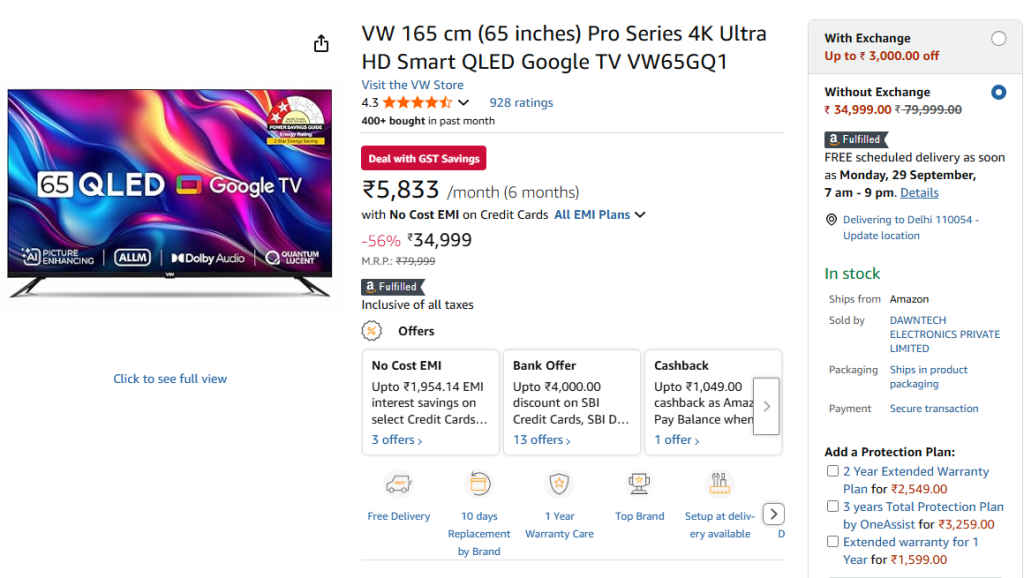 ಅಮೆಜಾನ್ ಸೇಲ್‌ನಲ್ಲಿ VW 65 Inch Smart TV ಬೆಲೆ ಮತ್ತು ಆಫರ್ಗಳೇನು?