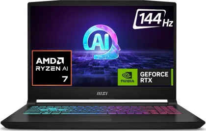 MSI Katana A15 AI B8VF-441IN Gaming Laptop (AMD Ryzen 7 8845HS/ 16GB/ 512GB SSD/ Win11 /8GB Graph) price in India starts from ₹97990. Take a look at MSI Katana A15 AI B8VF-441IN Gaming Laptop (AMD Ryzen 7 8845HS/ 16GB/ 512GB SSD/ Win11 /8GB Graph) detailed specifications and features