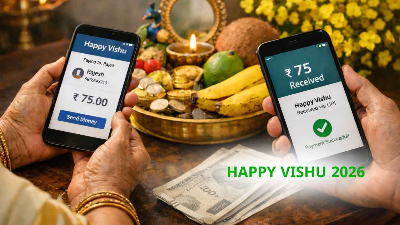 Visu 2026 ആഘോഷങ്ങൾ ഡിജിറ്റൽ യുഗത്തിനൊപ്പം പൊടിപൊടിക്കാം. മുതിർന്നവർ നൽകുന്ന ആ നാണയത്തുട്ടുകളുടെ കിലുക്കം നൊസ്റ്റുവായി സൂക്ഷിക്കുന്നവർക്ക്, തങ്ങളുടെ പ്രിയപ്പെട്ടവരിലേക്ക് UPI വഴി Vishu Kaineettam എത്തിക്കാം. നേരിട്ട് കാണാൻ കഴിയാത്ത മാതാപിതാക്കൾക്കും മക്കൾക്കും ദൂരെയുള്ള കുടുംബാംഗങ്ങൾക്കും, സുഹൃത്തുക്കൾക്കും, സഹപ്രവർത്തകർക്കും എളുപ്പത്തിൽ വിഷുക്കൈനീട്ടം അയക്കാനുള്ള ടെക്നോളജി ഇന്നുണ്ട്.