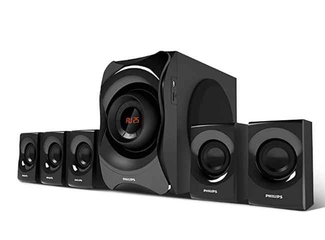 അധികം ചെലവില്ലാതെ ശക്തമായ ഓഡിയോ സിസ്റ്റം ആഗ്രഹിക്കുന്നവർക്ക് ഫിലിപ്സ് 5.1 ch ഹോം തിയേറ്റർ സിസ്റ്റം തെരഞ്ഞെടുക്കാം. LED ഡിസ്പ്ലേയും, വയേർഡ്, വയർലെസ് കണക്റ്റിവിറ്റിയും പിന്തുണയ്ക്കുന്നു. അതിനാൽ ഫിലിപ്സ് 5.1 ചാനൽ ഓഡിയോ സ്പീക്കർ പാർട്ടി പരിപാടികൾക്കും അനുയോജ്യമാണ്.