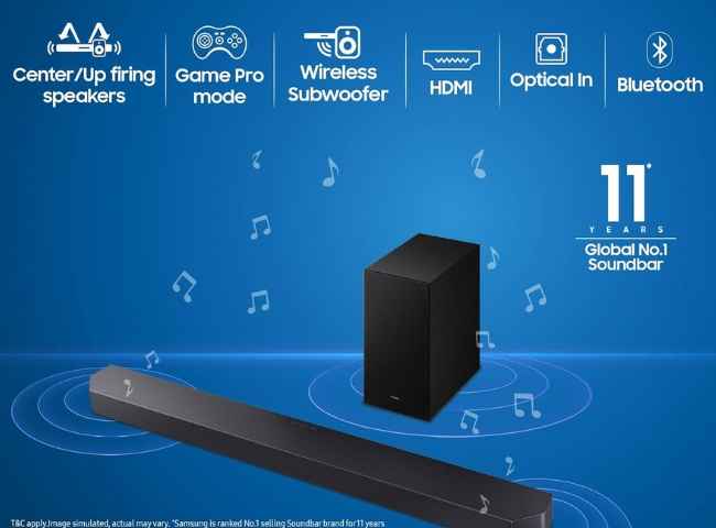 ഇനി ഡോൾബി ഓഡിയോ സപ്പോർട്ടുള്ള സാംസങ് സൗണ്ട്ബാറിനെ കുറിച്ച് വിശദമായി അറിയാം. 3.1.2 ചാനൽ സപ്പോർട്ടുള്ള ഓഡിയോ സിസ്റ്റമാണിത്. HDMI ARC, Optical In, USB തുടങ്ങിയ പോർട്ട് ഓപ്ഷനുകൾ ഇതിൽ ലഭിക്കും. അതുപോലെ ബ്ലൂടൂത്ത് കണക്റ്റിവിറ്റിയിലും ഈ ഓഡിയോ സിസ്റ്റം പ്രവർത്തിക്കുന്നു. HDMI, Optical, USB എന്നിവയിലൂടെയും കണക്റ്റ് ചെയ്യാനാകും.