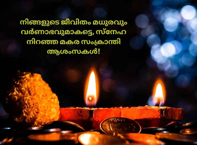 മകരസംക്രാന്തിയുടെ അനുഗ്രഹങ്ങൾ നിങ്ങളുടെ ജീവിതത്തിൽ സമാധാനവും സന്തോഷവും നിറയ്ക്കട്ടെ, മകര വിളക്ക് ആശംസകൾ നേരുന്നു!