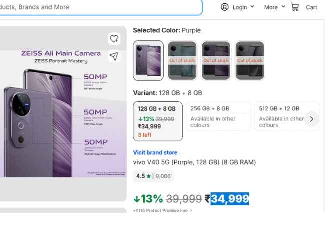 8 ജിബി റാമും 128 ജിബി ഇന്റേണൽ സ്റ്റോറേജുള്ള വിവോ ഫോണിനാണ് കിഴിവ്. 39,999 രൂപയ്ക്കാണ് സ്മാർട്ട് ഫോൺ ഇന്ത്യയിൽ ലോഞ്ച് ചെയ്തത്. പർപ്പിൾ കളറിലുള്ള വിവോ വി40 5ജിയ്ക്ക് മാത്രമാണ് കിഴിവ്. മറ്റ് കളർ വേരിയന്റുകൾക്കൊന്നും ഈ ഓഫർ ലഭ്യമല്ല.