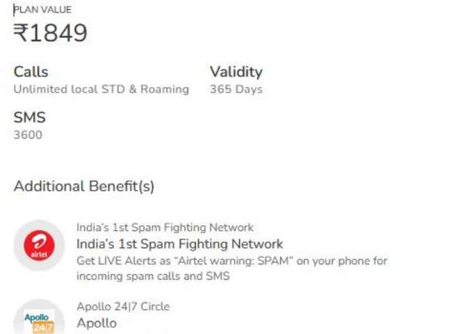 Airtel Rs 1849 Plan: ആനുകൂല്യങ്ങൾ