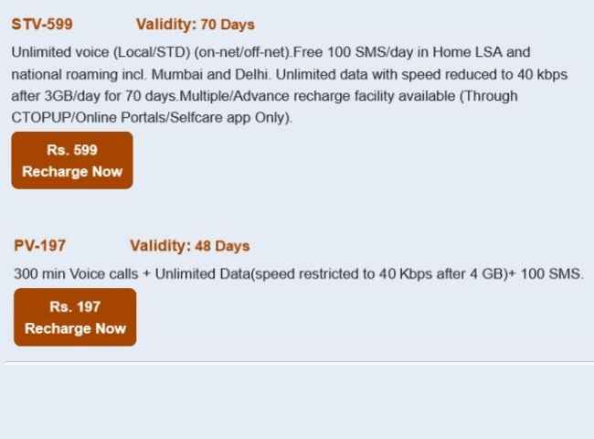 - 599 രൂപ പ്ലാൻ: 84 ദിവസത്തെ വാലിഡിറ്റി പ്ലാനിൽ ഇനിമുതൽ 70 ദിവസം വാലിഡിറ്റി