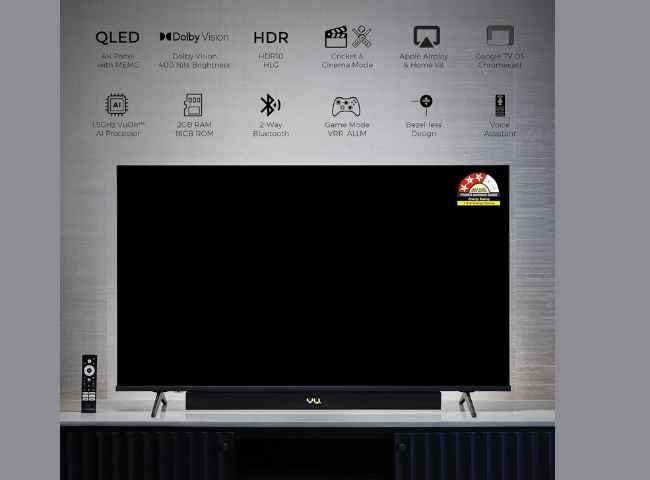 88W സൗണ്ട് സപ്പോർട്ടുള്ള ഈ Vu 55 ഇഞ്ച് ടിവി നിങ്ങൾക്ക് മികച്ച ഹോം തിയേറ്റർ എക്സ്പീരിയൻസ് തരുന്നു. ഇതിൽ 4K QLED ഡിസ്പ്ലേ കൂടിയുള്ളതിനാൽ പ്രീമിയം സിനിമാറ്റിക് അനുഭവം ലഭിക്കുന്നു.