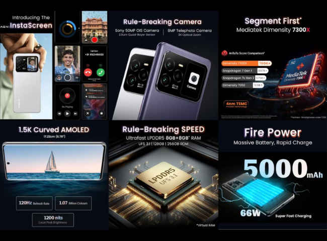 Lava Agni 3 5G हा ड्युअल डिस्प्लेसह येणार स्मार्टफोन आहे. या स्मार्टफोनच्या पुढील आणि मागील दोन्ही पॅनलवर स्क्रीन आहे. या मोबाईलचा लूक त्याला इतर स्मार्टफोनपेक्षा वेगळा बनवतो. फोनचा हा सेकंडरी डिस्प्ले मागील कॅमेरा सेटअपमध्ये बसवण्यात आला आहे. ज्याला कंपनीने ‘इन्स्टा स्क्रीन’ असे नाव दिले आहे. या सेकंडरी स्क्रीनवरून कॉल, मेसेज आणि इतर सूचना पाहता आणि ऍक्सेस करता येतात, तसेच सेल्फी देखील घेता येईल. फोनच्या उजव्या फ्रेमवर ‘Action Key’ देखील देण्यात आली आहे, जी अनेक टोस्टसाठी शॉर्टकट बटण म्हणून काम करेल.