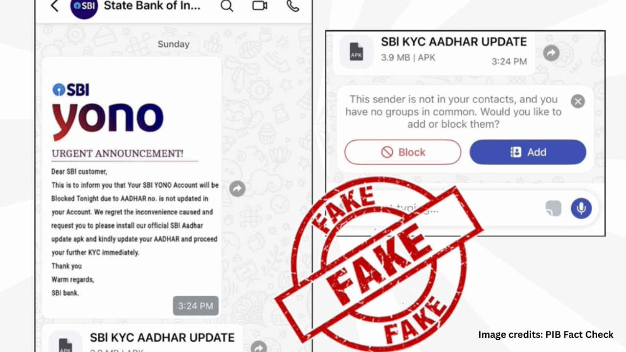 The claim was also fact-checked by the Press Information Bureau under its PIB Fact Check initiative. PIB confirmed that the message is fake and misleading. It clarified that SBI does not ask customers to update Aadhaar or KYC details by downloading APK files or through unsolicited messages. PIB advised people not to share personal, banking, or Aadhaar information with unknown sources. It also asked users to report such phishing messages to SBI through its official reporting channels.