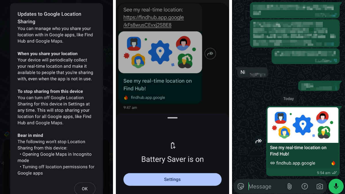 Google Message live location sharing is powered by the Find Hub feature of Google Maps. When the recipient taps the shared location link, it opens in the default browser on your phone if the Find Hub app isn’t installed.