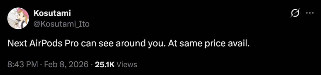 In a short post shared on X, Kosutami stated: ‘Next AirPods Pro can see around you. At same price avail.’ The tipster has shared no technical explanation, and we have no official hints from Apple either.