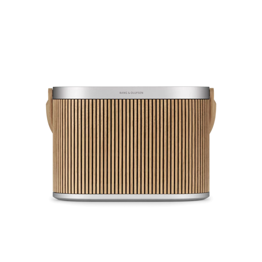 The Beosound A5 portable speaker combines style and versatility, delivering 280W of power through a four-driver setup and supporting Active Room Compensation and Adaptive Bass Linearization for balanced sound across rooms.