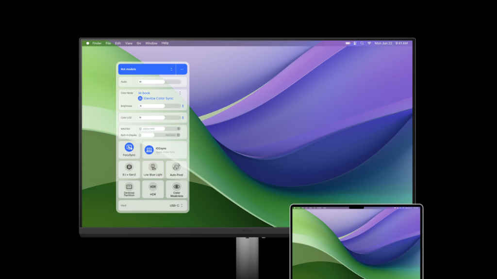 On the software side, features like iDevice Color Sync automatically detect connected MacBook models and apply matching colour profiles. This removes the need for manual calibration and reduces visible colour shifts between the laptop screen and the external monitor. M-book Mode and ICCsync further simplify colour management when switching between apps or devices.