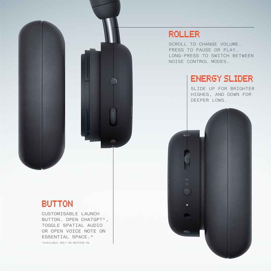 Noise cancellation is handled by Hybrid Adaptive ANC with up to 40dB reduction. There is Spatial Audio support in Cinema and Concert modes. Software features are handled through the Nothing X app on Android and iOS. Users can adjust EQ, ANC levels, spatial modes, update firmware and create a personalised sound profile using Audiodo tuning, which adapts output based on a short hearing test.