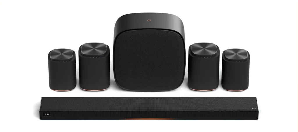LG’s implementation takes a broader approach, allowing the soundbar to pair with up to four surround speakers and a dedicated subwoofer, enabling configurations that scale all the way to a 13.1.7-channel system.