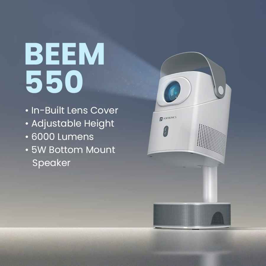 Portronics has launched its latest compact projector, the Beem 550 Smart LED Projector, aimed at users who want an easy-to-use, portable entertainment device. It comes as an upgrade to Beem 540, which launched earlier this year. The new model focuses on ‘convenience and clarity in a sleek design.’ It brings a higher native resolution of 1080 pixels, a higher brightness of 6,000 lumens, 5W sound output, an adjustable stand, autofocus and auto keystone for better image projection. With Android TV built in, it offers direct OTT streaming, removing the need for external devices or manual configuration.