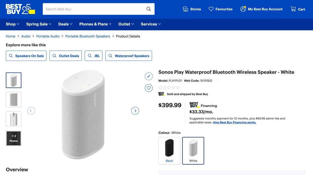 Sonos’ next portable speaker, reportedly called the Sonos Play, surfaced early on a Canadian Best Buy listing (but now taken down). The yet-to-be-announced model appears to be aimed at mainstream buyers who want a mid-range portable speaker within the Sonos ecosystem. According to this product page on Best Buy Canada, the Sonos Play resembles a slightly smaller version of the Sonos Move 2, complete with a rear loop for carrying. Even though the listing can’t be accessed anymore, screenshots shared online reveal key specifications and feature claims.