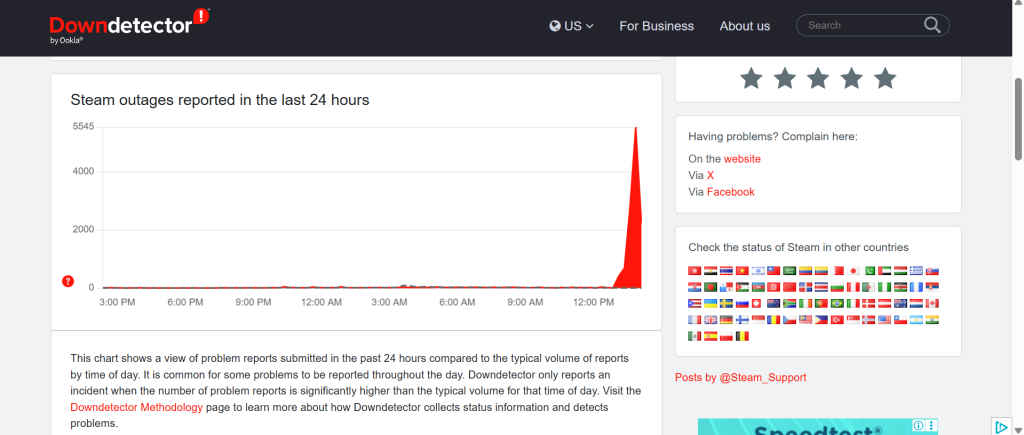 Widespread Steam outage with over 56,000 reports logged as users across the US face login and gameplay issues.