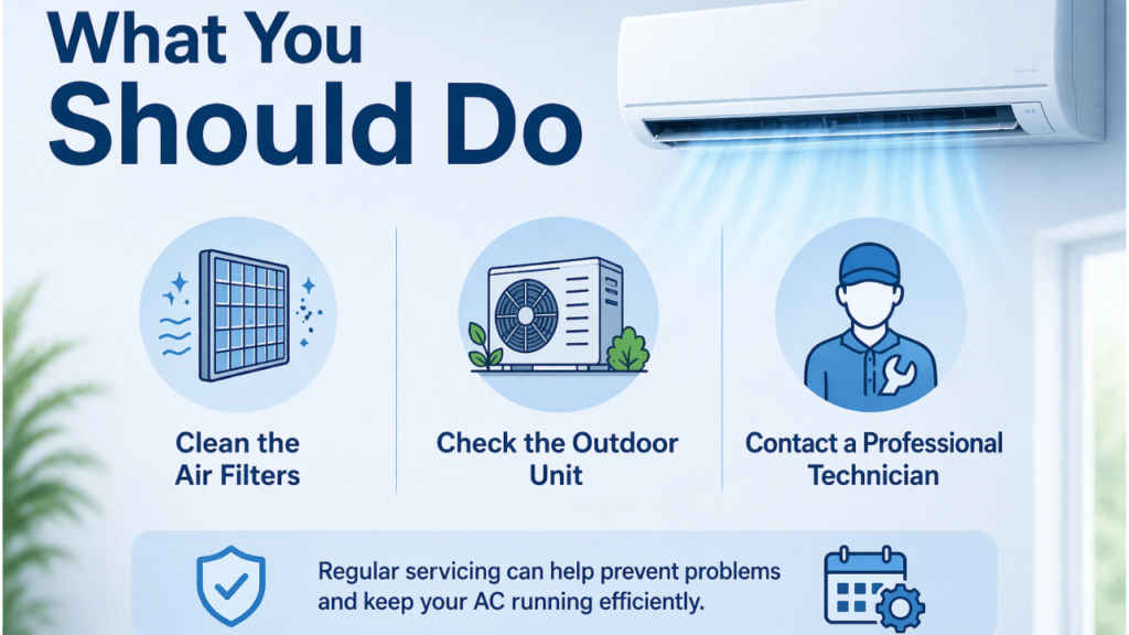 If the AC still does not cool well after these basic checks, it is best to contact a professional technician. Issues such as refrigerant leaks, compressor failure or electrical faults require expert inspection and repair. Regular servicing can also help prevent such problems and keep your AC running efficiently during the hot months.