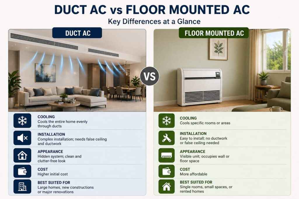 Duct AC vs floor mounted AC: Which one is better for your room and why