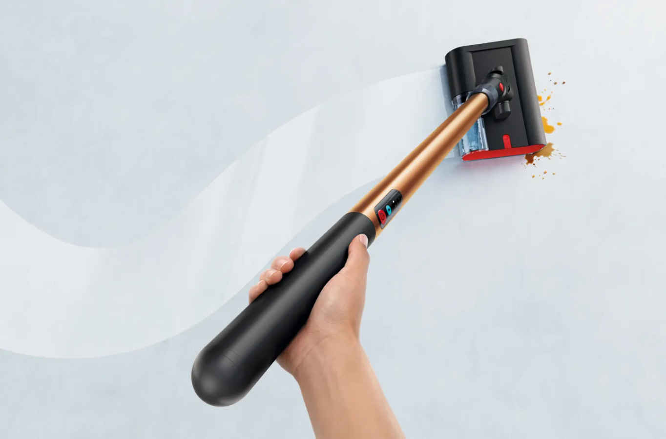 It packs a 300ml clean water tank and a 360ml dirty water tank, and is rated to cover up to 100m2 in low hydration mode. There is no dustbin onboard. Rather, it sports a high-density microfibre roller with 64,000 filaments per cm2, an 8-point pressurised hydration system for controlled fresh water delivery, and the ability to continuously extract dirty water and debris.