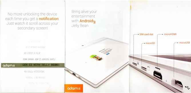 The tablet is likely to run the latest Android 4.2 Jelly Bean OS. The Adam II will come with Google Play support, two front speakers and SIM card slot for 3G.