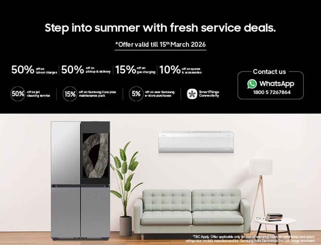 Samsung has announced its Proactive Summer Care Campaign in India, offering up to 50% discounts on air conditioner and refrigerator servicing. The campaign is already live and is aimed at customers preparing their appliances ahead of the peak summer season. You could avail the service to reduce breakdown risks, improve cooling performance and ensure energy efficiency before summer is here.