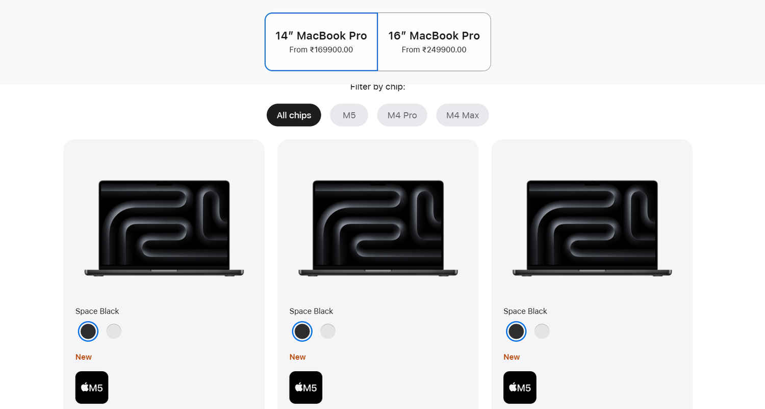 Apple’s official website is no longer selling the M4 MacBook Pro and the company has replaced it with the new M5 laptop. If you head over to Apple’s website right now, you will see only three chipset options to choose for the 14-inch MacBook Pro – the newly-launched M5, M4 Pro and M4 Pro Max.