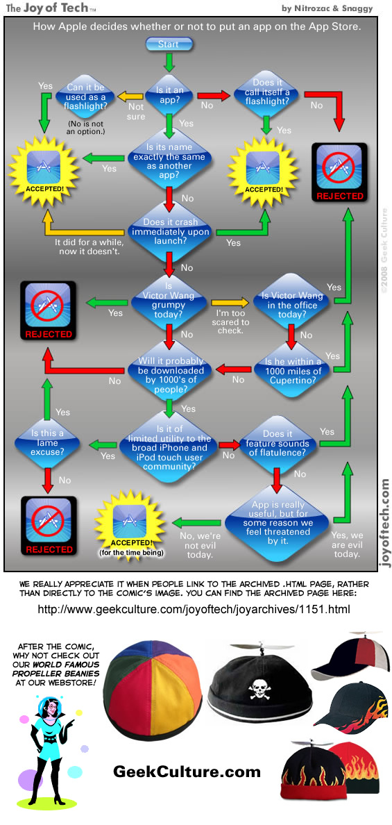 A response from Apple is a good sign surely, but it does not absolve them of all the blame. People have been patiently awaiting for any kind of response from Apple (besides the usual rejection letters) after literally hundreds (maybe thousands) of criticizing articles, and there has been none. It taken so long that it isn’t even funny anymore, and their rejection of the Google Voice app and has shaken the faith of the final few.