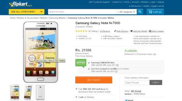 The first generation Samsung Galaxy Note can now be purchased for Rs. 21,500, which is Rs. 6,550 cheaper than its MRP.