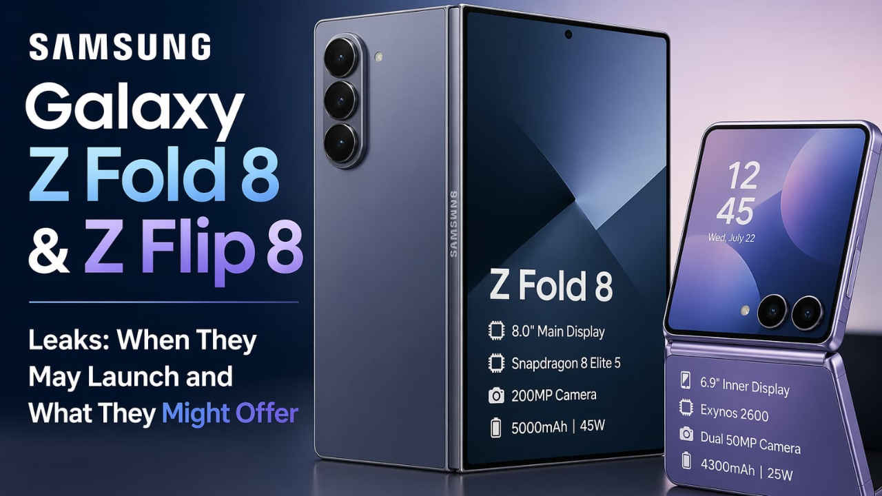 The Samsung Galaxy Z Fold 8 and Galaxy Z Flip 8 are expected to be unveiled on July 22, 2026. The Z Fold 8 is said to be launched with a starting price of Rs 1,74,999, while the Z Flip 8 will likely cost around Rs 1,19,999.