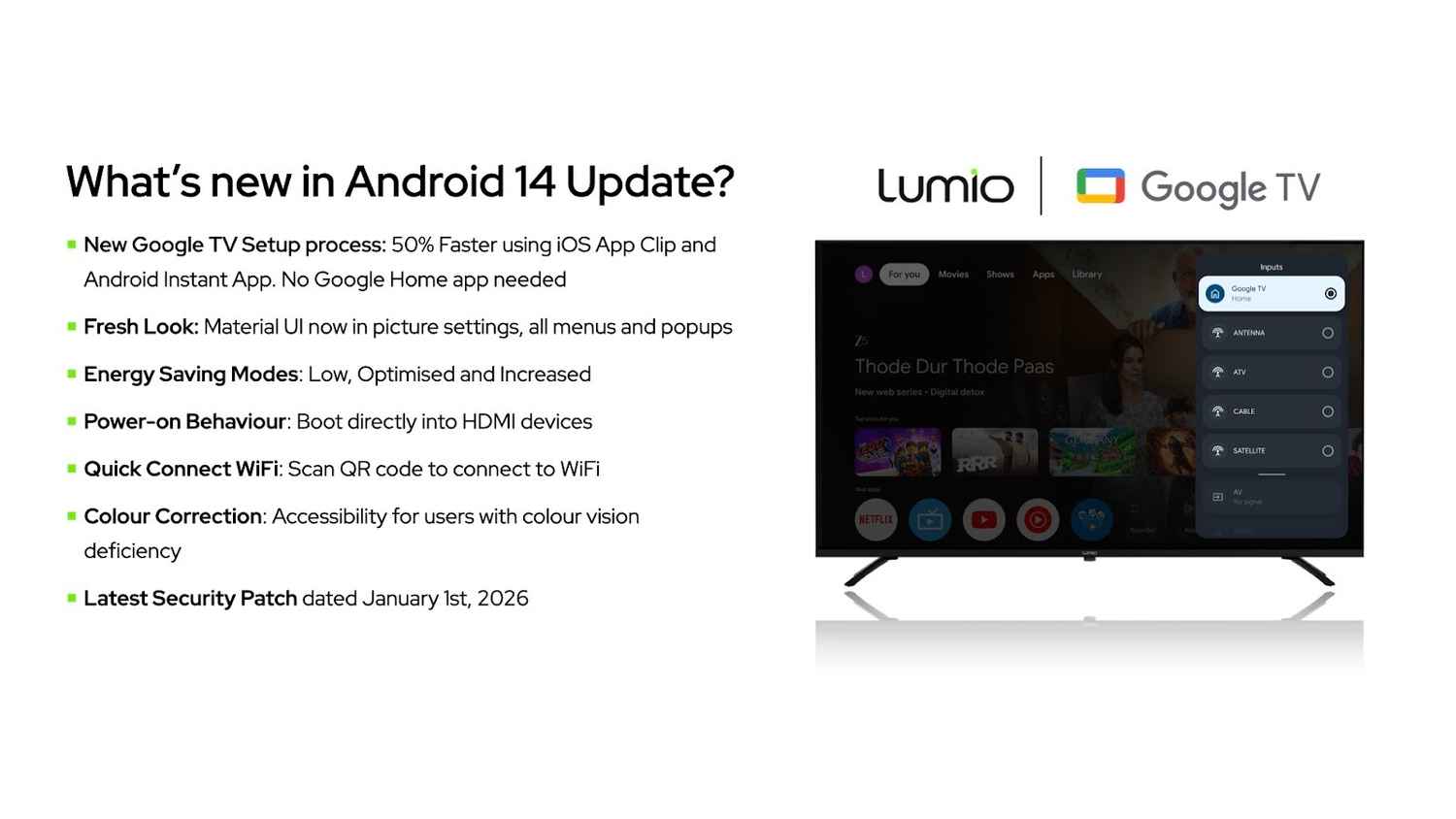 Lumio has announced that it is updating its entire product portfolio to Android 14, becoming the first television and projector brand to complete a portfolio-wide rollout. The Bengaluru-based company confirmed that all new Lumio Vision TVs are already shipping with Google TV powered by Android 14, while existing Vision TV users in India get it this month. The Lumio Arc projector lineup will follow soon. This news could matter to both new buyers and existing users of the company’s products, as it shows Lumio is a brand focused on long-term software support.