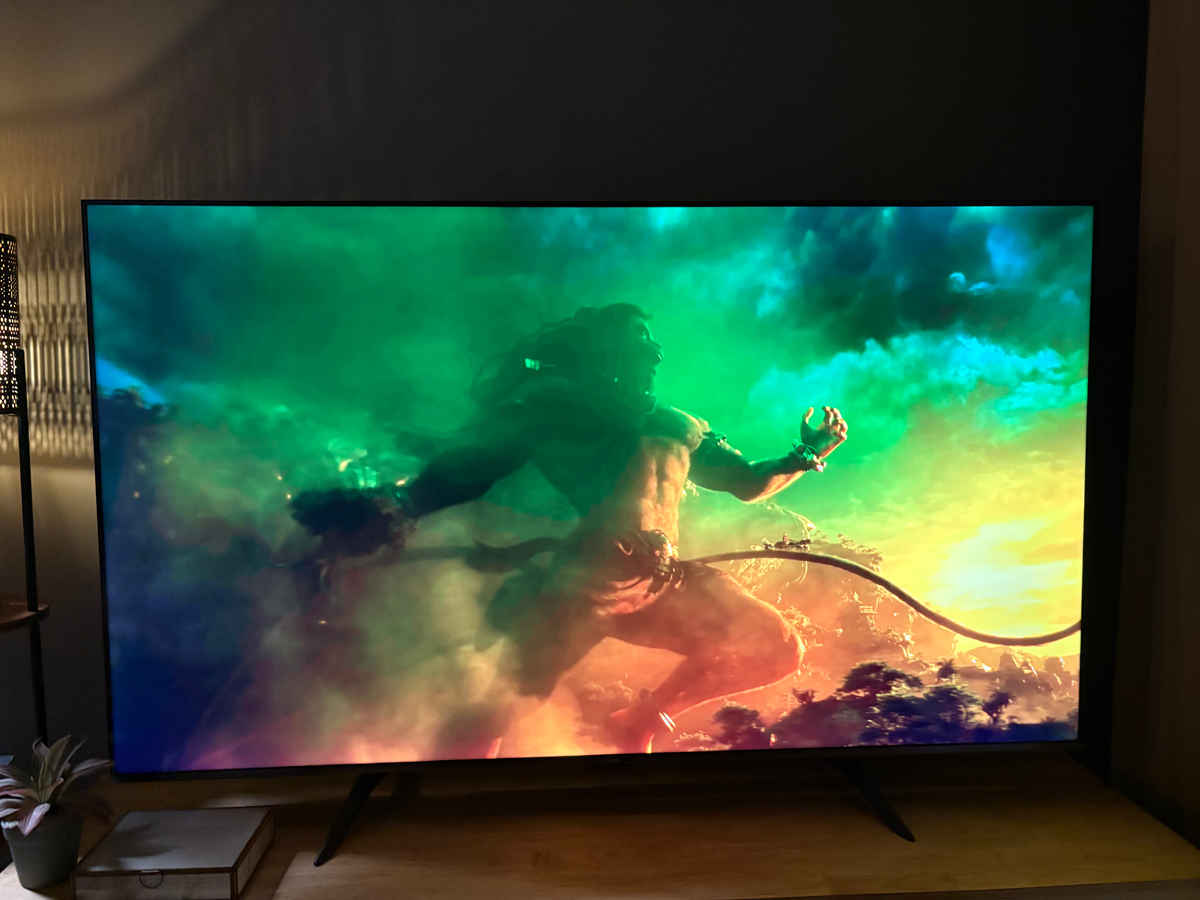 The TV features a 75-inch 4K QLED display with support for Dolby Vision, HDR10+ and Filmmaker mode. The latter disables motion smoothing and adjusts colour profiles to preserve the director’s intended look, which is useful for film enthusiasts. The 10-bit panel claims to achieve 94% DCI-P3 colour gamut.