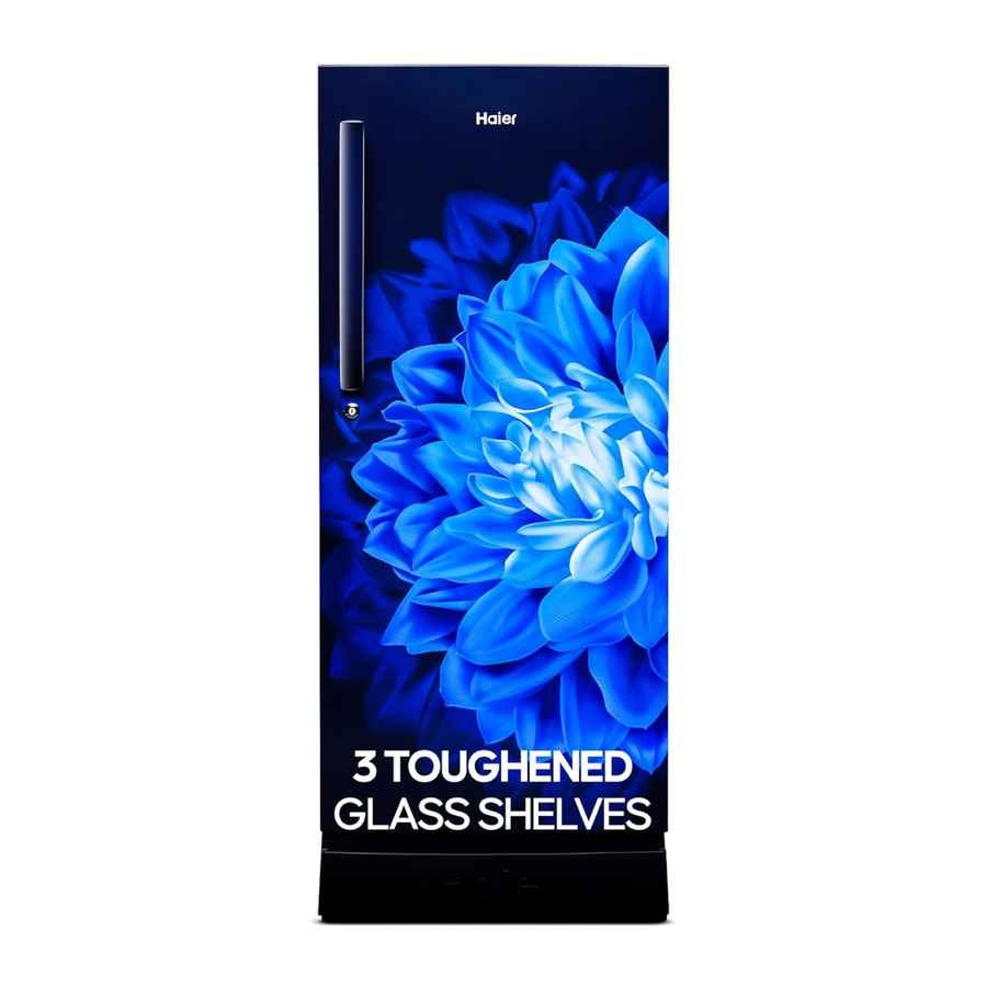 Haier 190 L, 4 Star, Direct-Cool Single Door Refrigerator (HED-204MDB, Marine Dahelia, Base Stand Drawer)