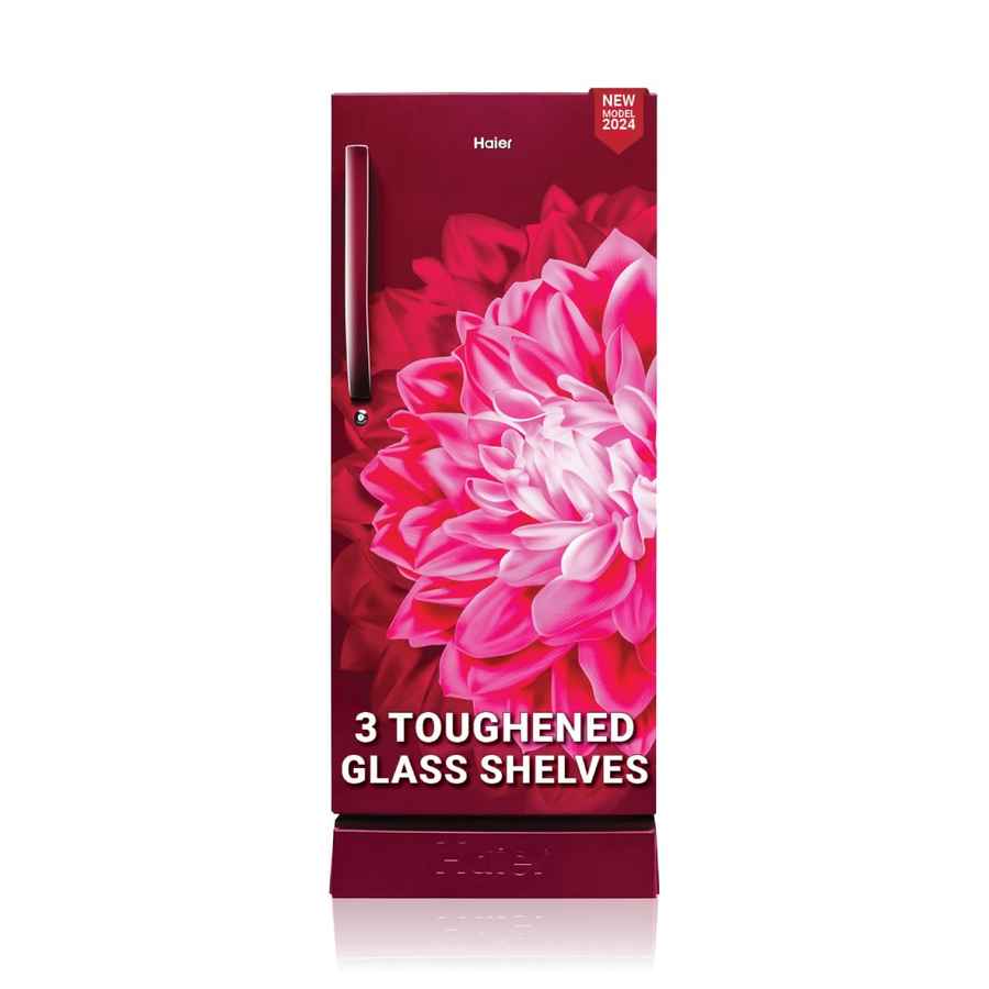 Haier 190 L, 4 Star, Direct-Cool Single Door Refrigerator (HED-204RDB-P, Red Dahelia, Base Stand Drawer)