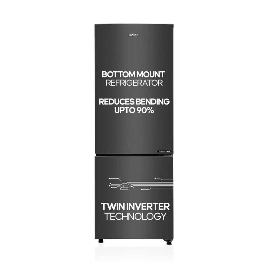 Haier 237 L, 3 Star, 8 In 1 Convertible, Twin Inverter Technology, Bottom Mounted Frost Free Double Door Refrigerator (HEB-243GB-P, GE Black)