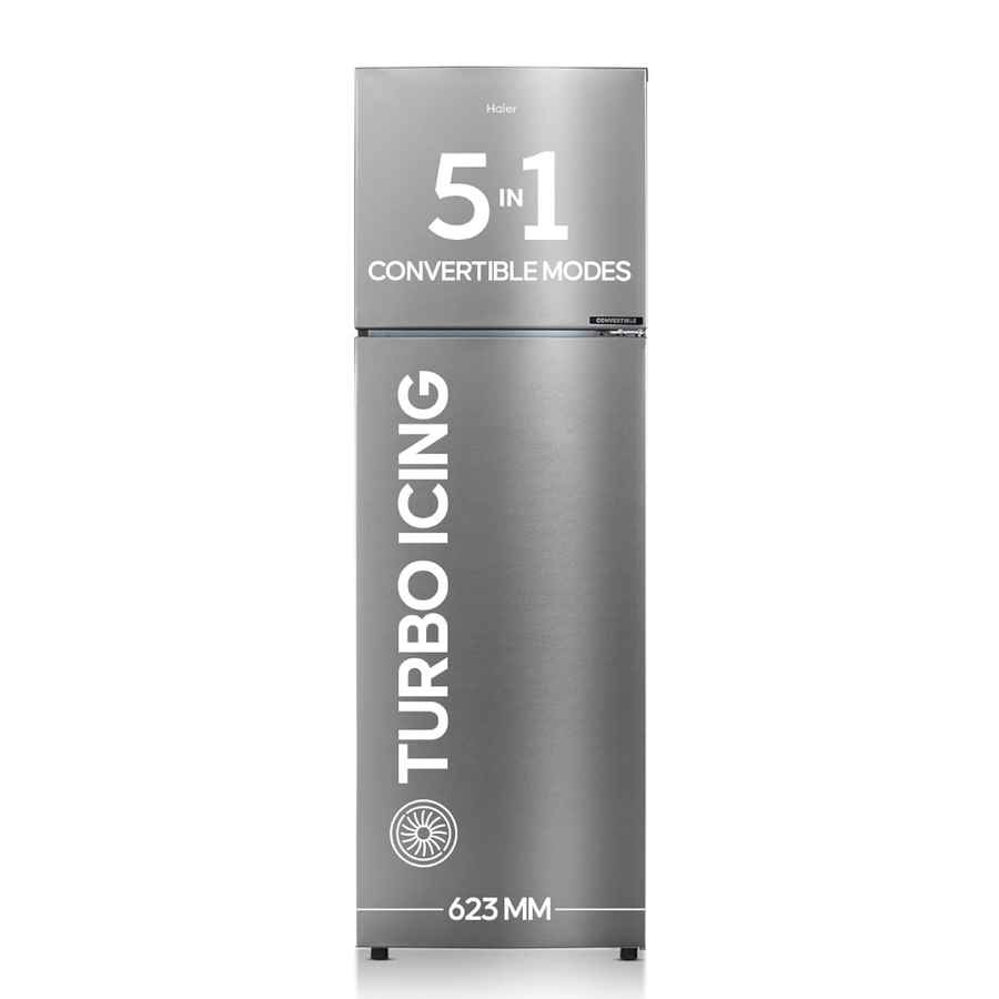 Haier 268 L, 2 Star, 5 In 1 Convertible, Twin Inverter Technology, Frost Free Double Door Refrigerator (HEF-272TS-P, Inox Steel)
