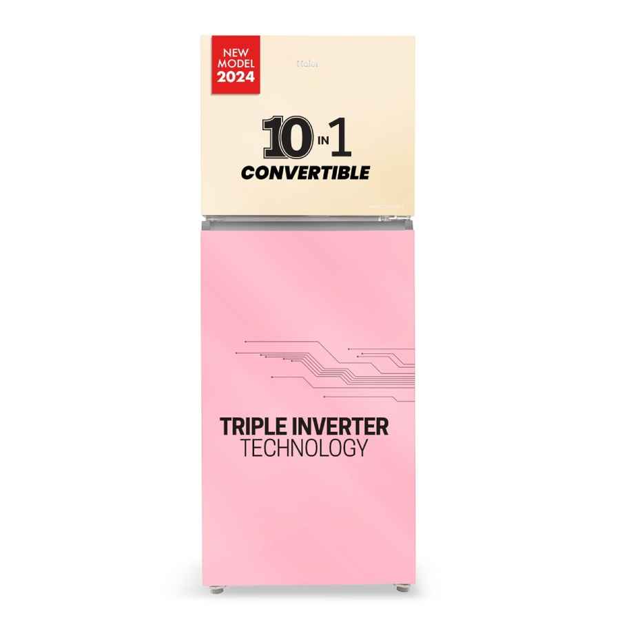 Haier 328 L, 3 Star, Convertible 10-in-1 Triple Inverter & Fan Motor Technology, Frost Free Double Door Refrigerator (HRF-3783CPG-P, Cream Pink Glass)