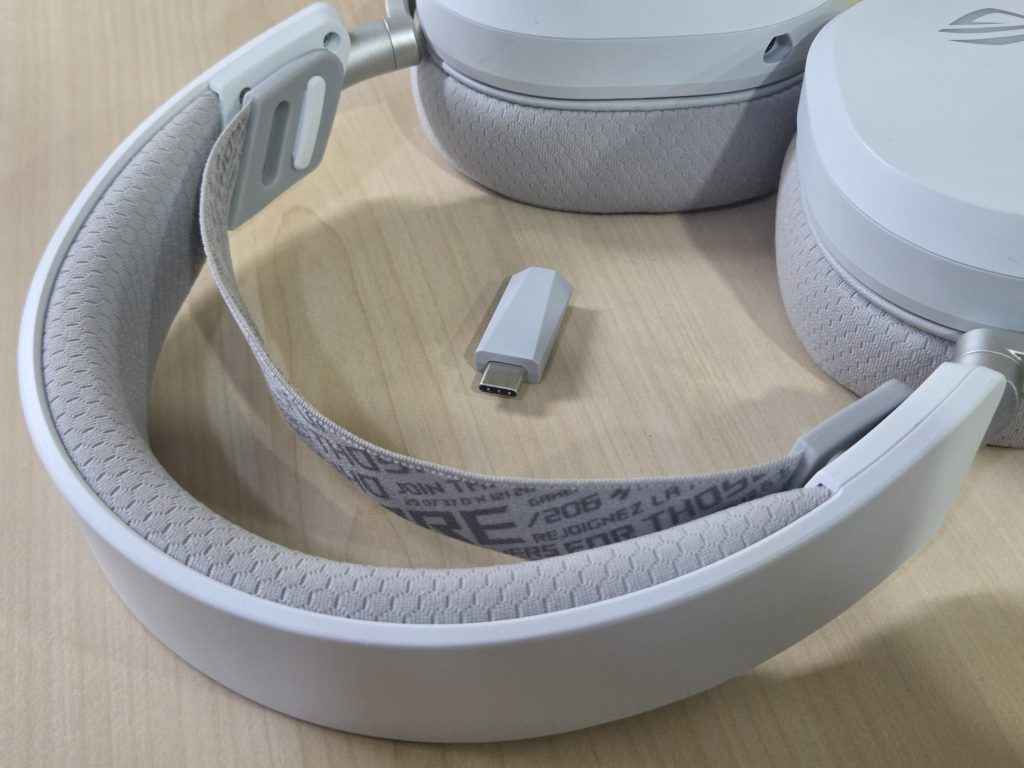 ASUS has put all the controls on the left earcup, which I appreciate for muscle memory. I found the slider for switching between Bluetooth, 2.4 GHz, and wired mode intuitive, though the wired situation is a bit odd. It comes with a USB-A to USB-C cable for charging and wired audio. If you were hoping to use a standard 3.5 mm aux cable, you are out of luck because you don’t get an 3.5 mm to USB-C converter either. The 3.5 mm port exists, but it is exclusively for the detachable boom mic.