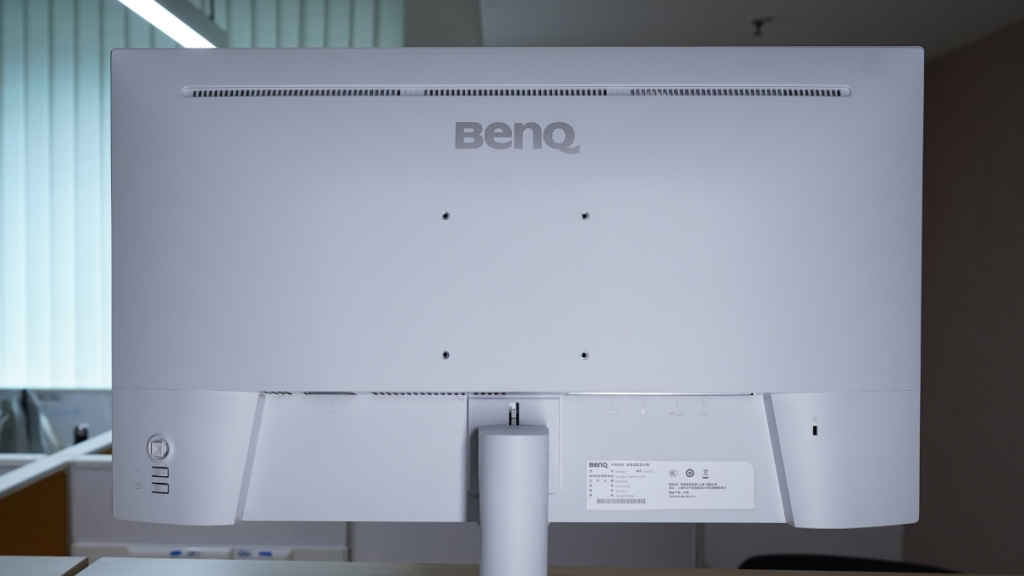 The build quality is solid, too. BenQ has used strong plastic with a clean finish. The stand doesn’t wobble. The base is wide and stable, and it offers an enclosure to place small items like a phone, TWS case, god idols or soft toys. Thoughtful design choice.