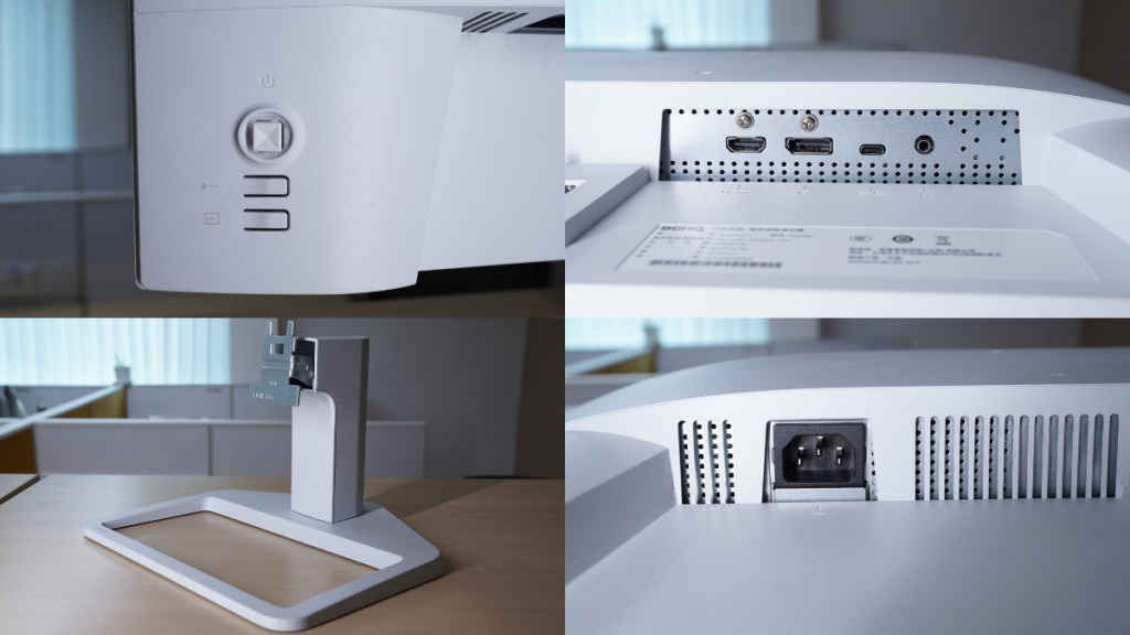 The stand and the screen come detached in the box. But joining them is very easy. You can follow BenQ’s tutorial on YouTube. Once set up on the desk, you can change its height and position by tilting, swiveling and pivoting. So, ergonomic: check.
