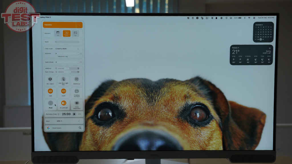 The panel’s brightness was touching 430 nits in our test. BenQ also offers TUV-certified eye-care protection features, including flicker, brightness, and blue-light control.