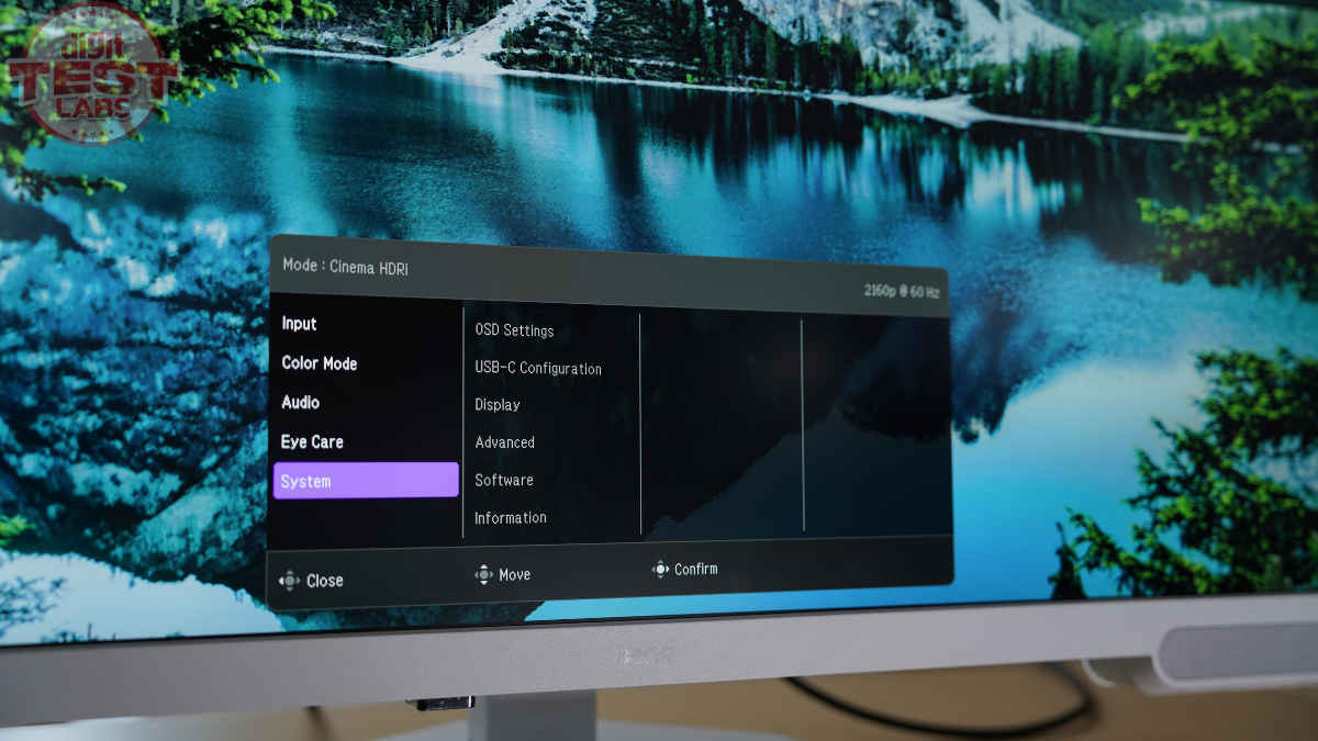 In terms of software, it doesn’t have a built-in OS or app library like the Samsung Smart Monitor M7. Through the remote or on-chassis buttons, you can primarily tweak HDR profiles, usage scenarios, audio modes, and some system settings like USB-C configuration, OSD options, etc.
